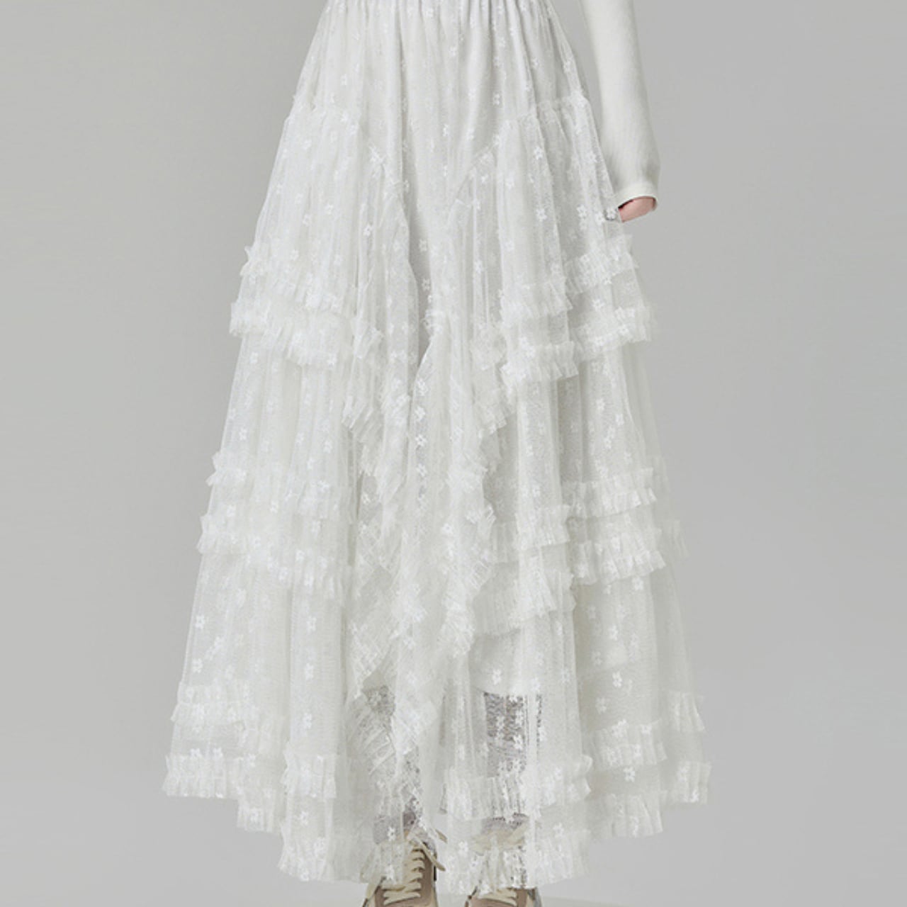 繊細なレース素材を使用したロングスカートです。優雅なシルエットと肌の透け感が魅力で、特別な日のお出かけはもちろん、普段使いにもおすすめの一着です。軽やかなレース生地は動くたびに美しく揺れ、シーズンを問わずスタイルを華やかに演出します。