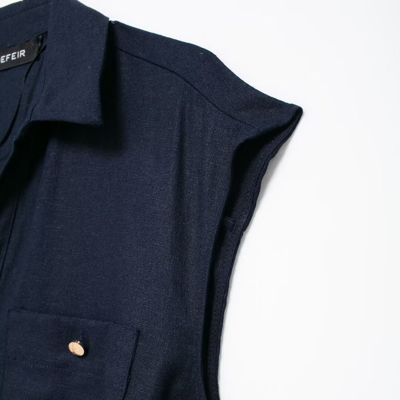 洗練されたボタンディテールとウエストベルトが魅力のノースリーブワンピースです。シンプルながらも存在感のあるデザインで、オフィスからデート、カジュアルな日常まで幅広くコーディネート可能です。軽やかな生地感と柔らかなラインが、美しいシルエットを演出し、シーズンを問わずおしゃれを楽しんでいただける一着です。