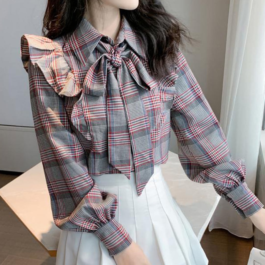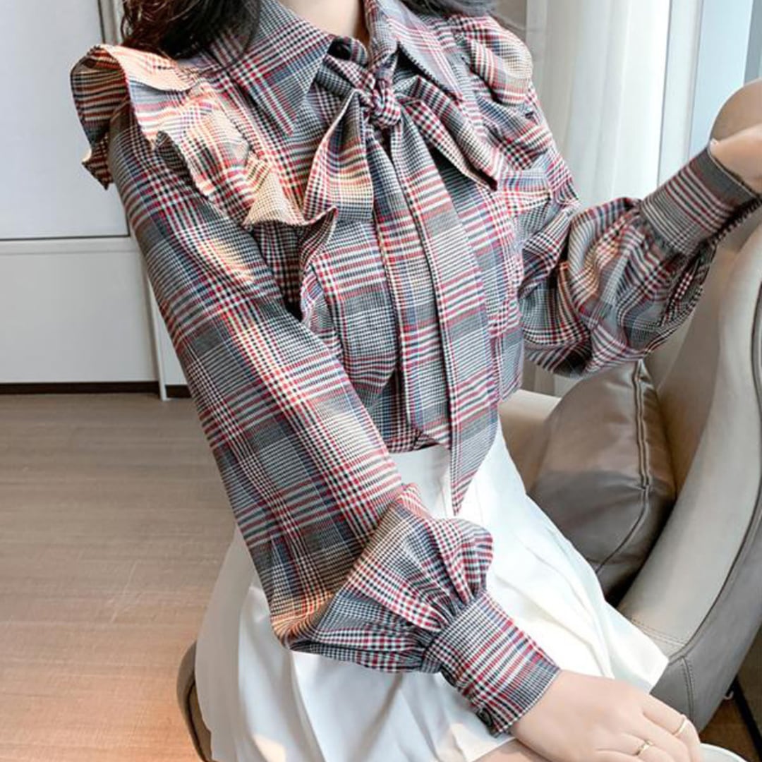 きちっとしたトラッドチェック柄に、ふんわりボウタイリボンがぽわんと可愛らしさをプラス♪袖口のくしゅくしゅギャザーと肩のぷっくりボリュームで、甘辛バランスが絶妙な一枚です。クラシックなチェック柄だから子供っぽくならず、大人女性にぴったりの上品な印象に。首元のりぼんをくるっと結べば、きゅんとする愛らしさが演出できます。