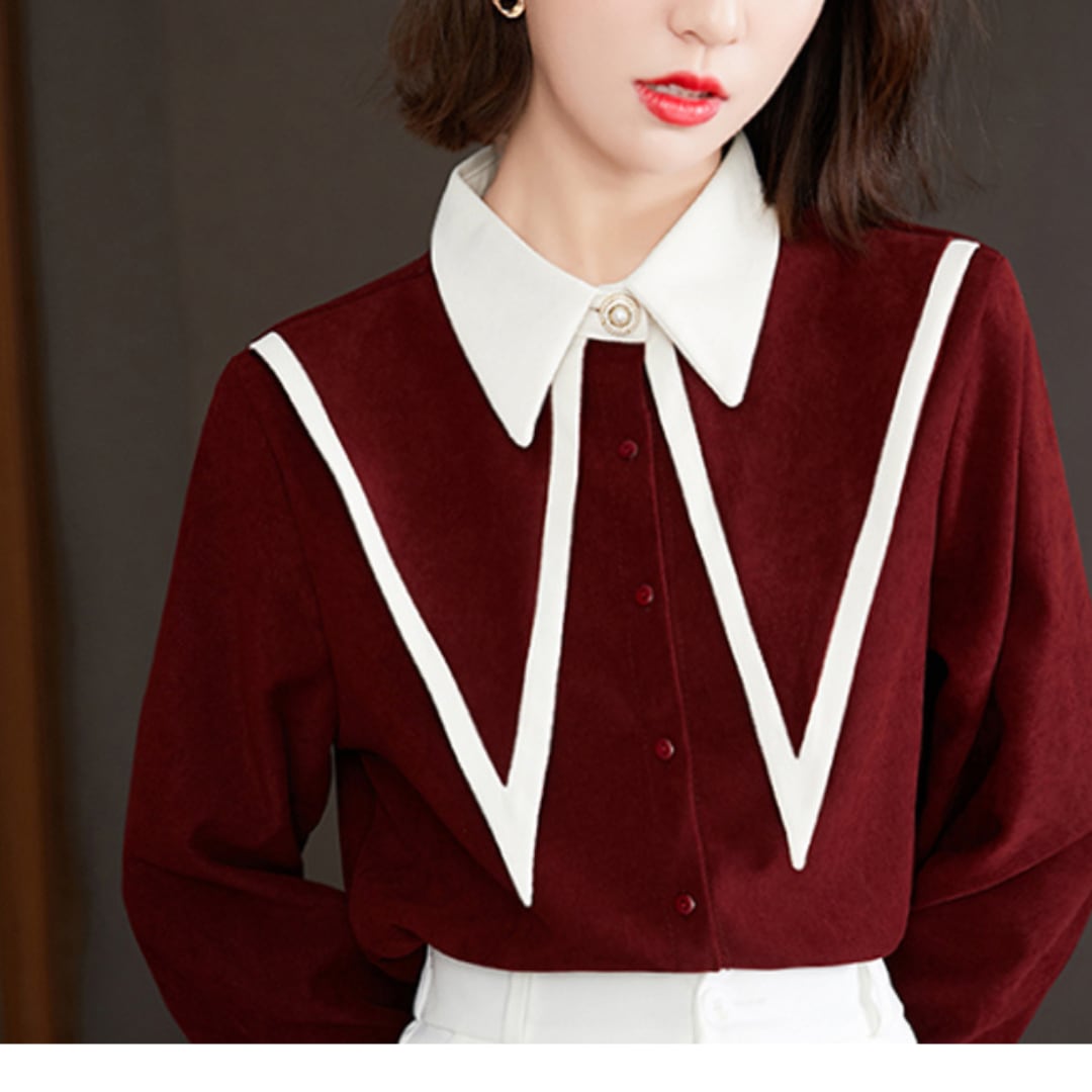 魅力的なバーガンディーのデザインが特徴のブラウスです。デイリーユースから特別なシーンまで、幅広いスタイリングでおしゃれを楽しめるアイテムとなっています。