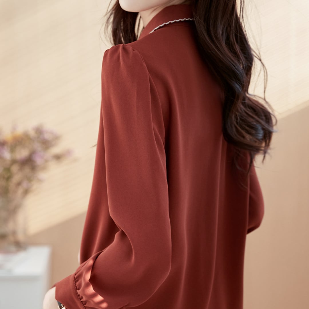 胸元の小さなパールボタンがちょこんと可愛らしく、品の良さをプラスしてくれます。