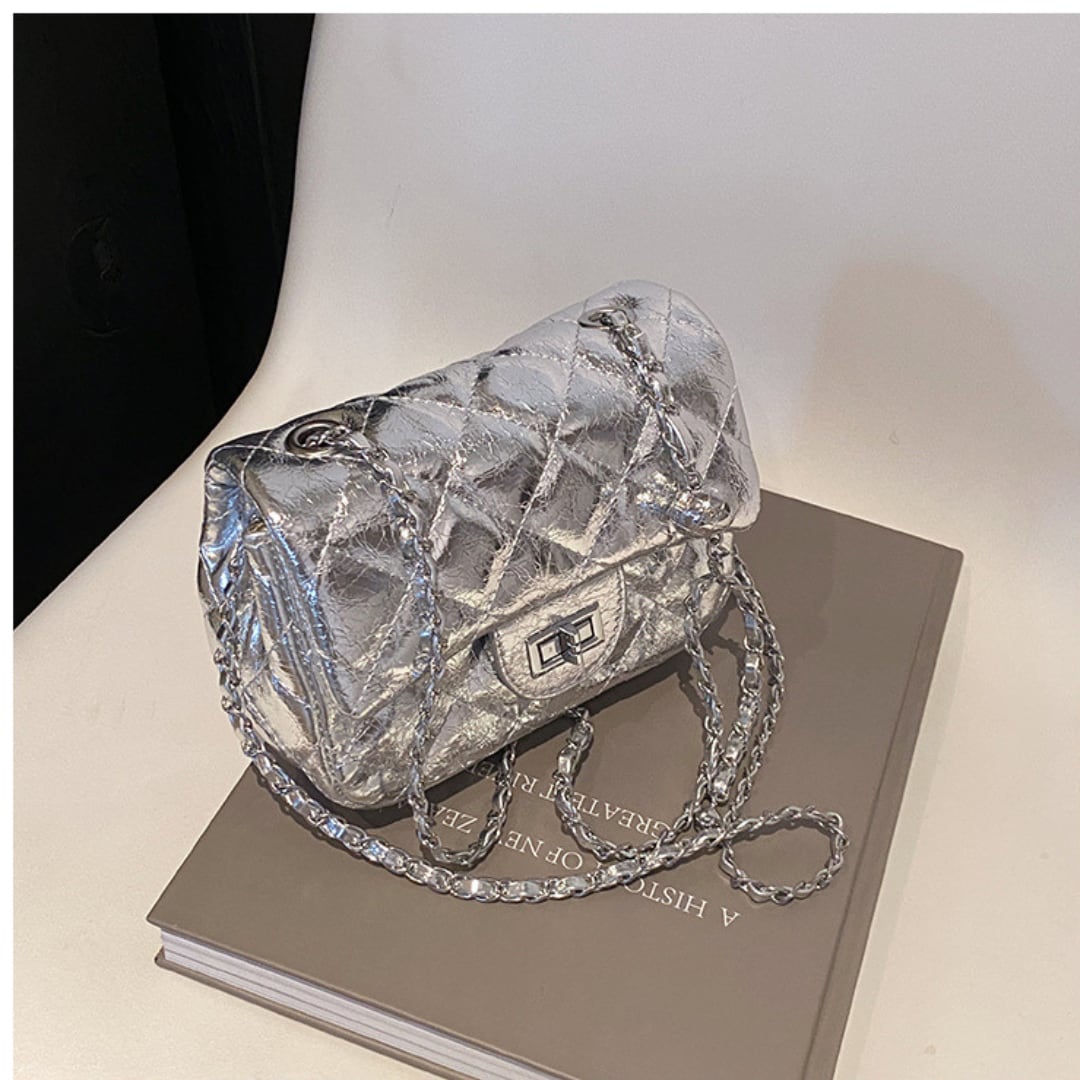 きらりと光るメタリック加工の表面が、光に当たるたびにぴかぴか♪と美しく輝きます。ふっくら♡とした立体的なキルティングデザインで、持つだけで特別感をプラス。華奢なチェーンがしゃらしゃら♪と音を立てて、歩くたびに上品な存在感を演出します。コンパクトながらもしっかりとした作りで、デイリーから特別な日まで幅広くお使いいただけます。