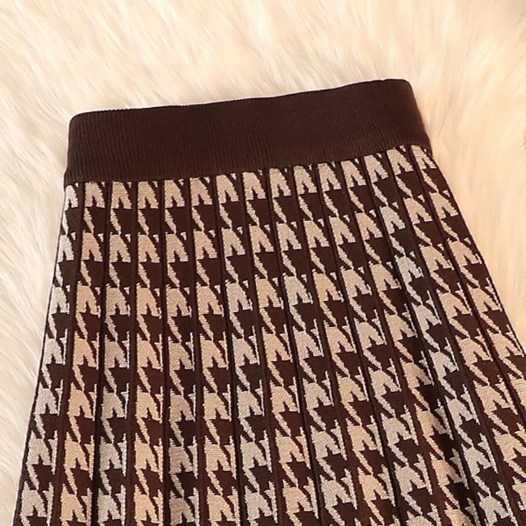 ふわっと広がる千鳥格子のニットプリーツスカートで、大人の上品さをぎゅっと詰め込みました♪