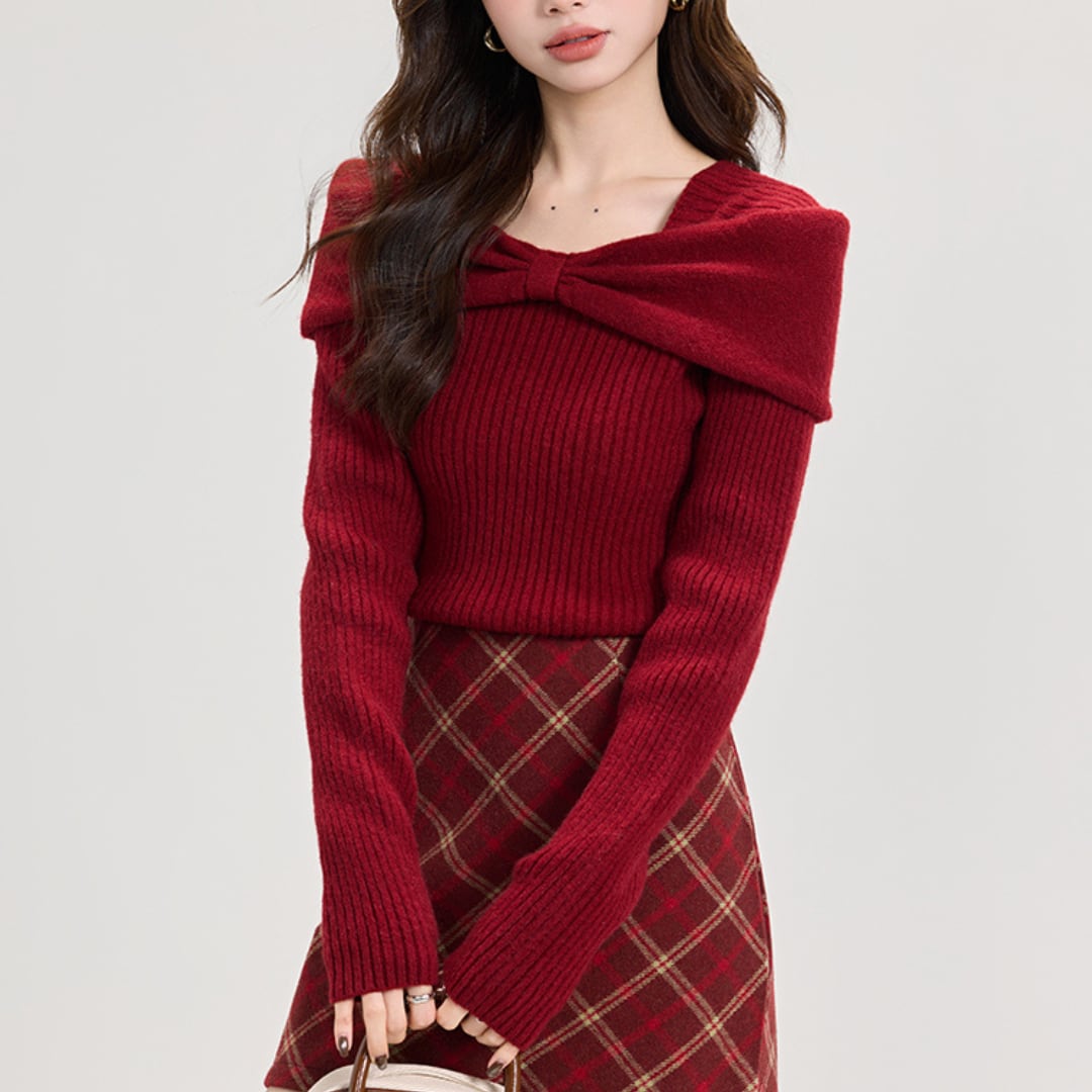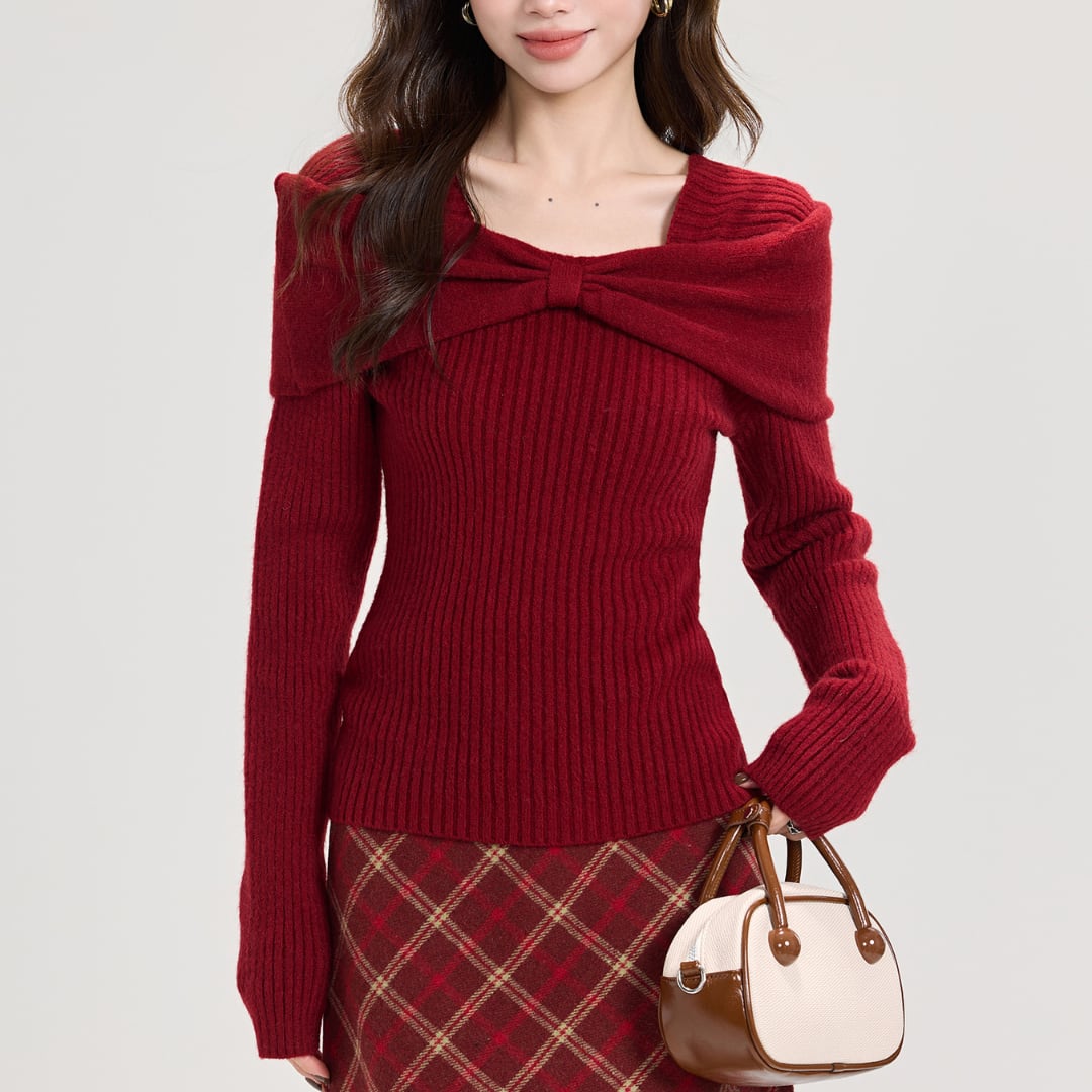 ■リボン風オフショルダーニット_H170