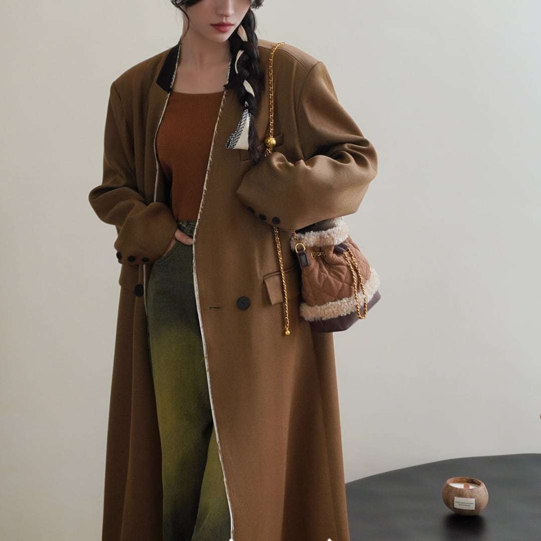 なめらかな質感のスエード調生地と、しっとりとした手触りのレザー調素材を使用。キルティング部分はふっくらとした立体感があり、高級感のある仕上がりです。ボア部分はもふもふの起毛素材で、触るたびに癒されるアイテム。内側には必需品がすっきり収まるポケット付きです。