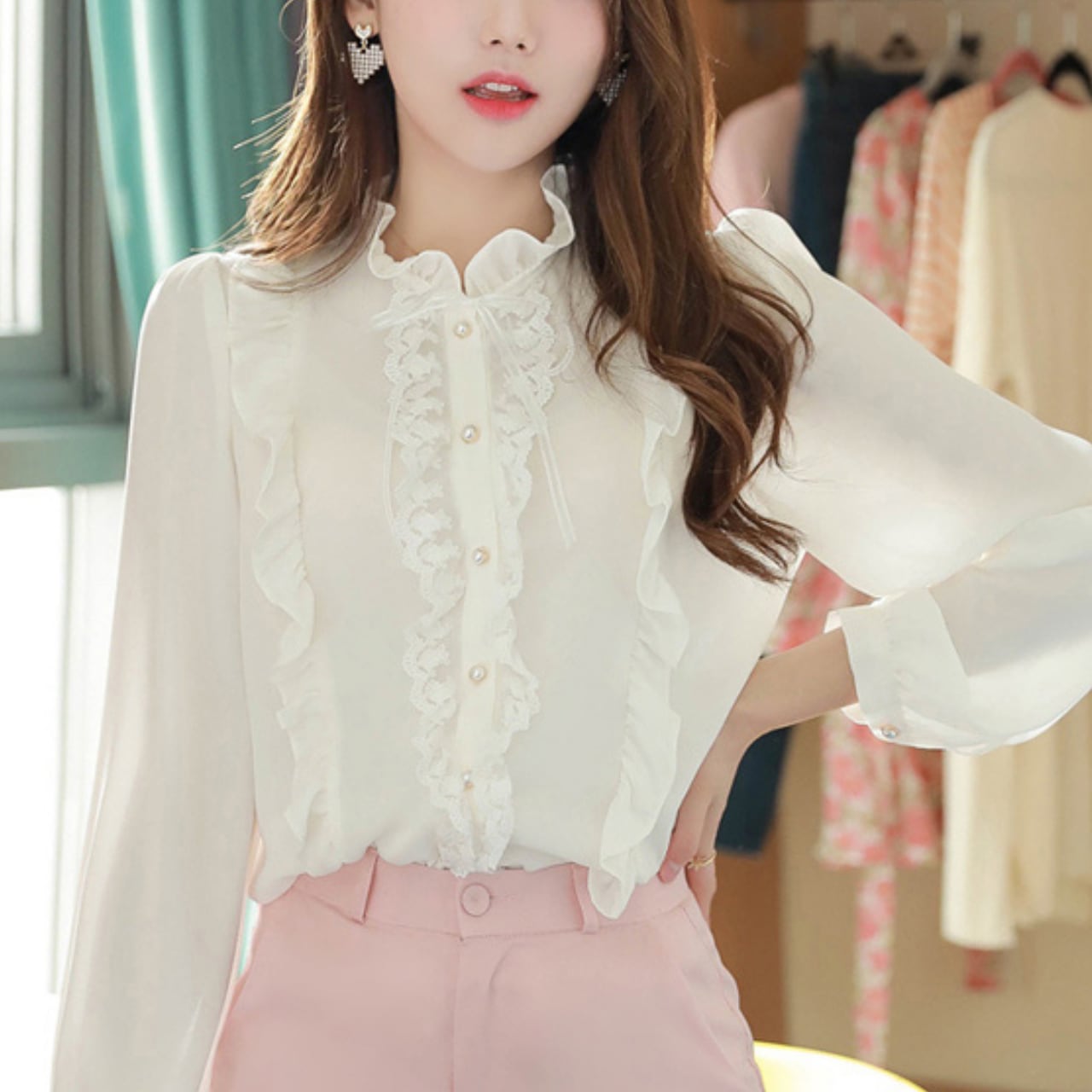 パール ボタン リボン ブラウス_p70