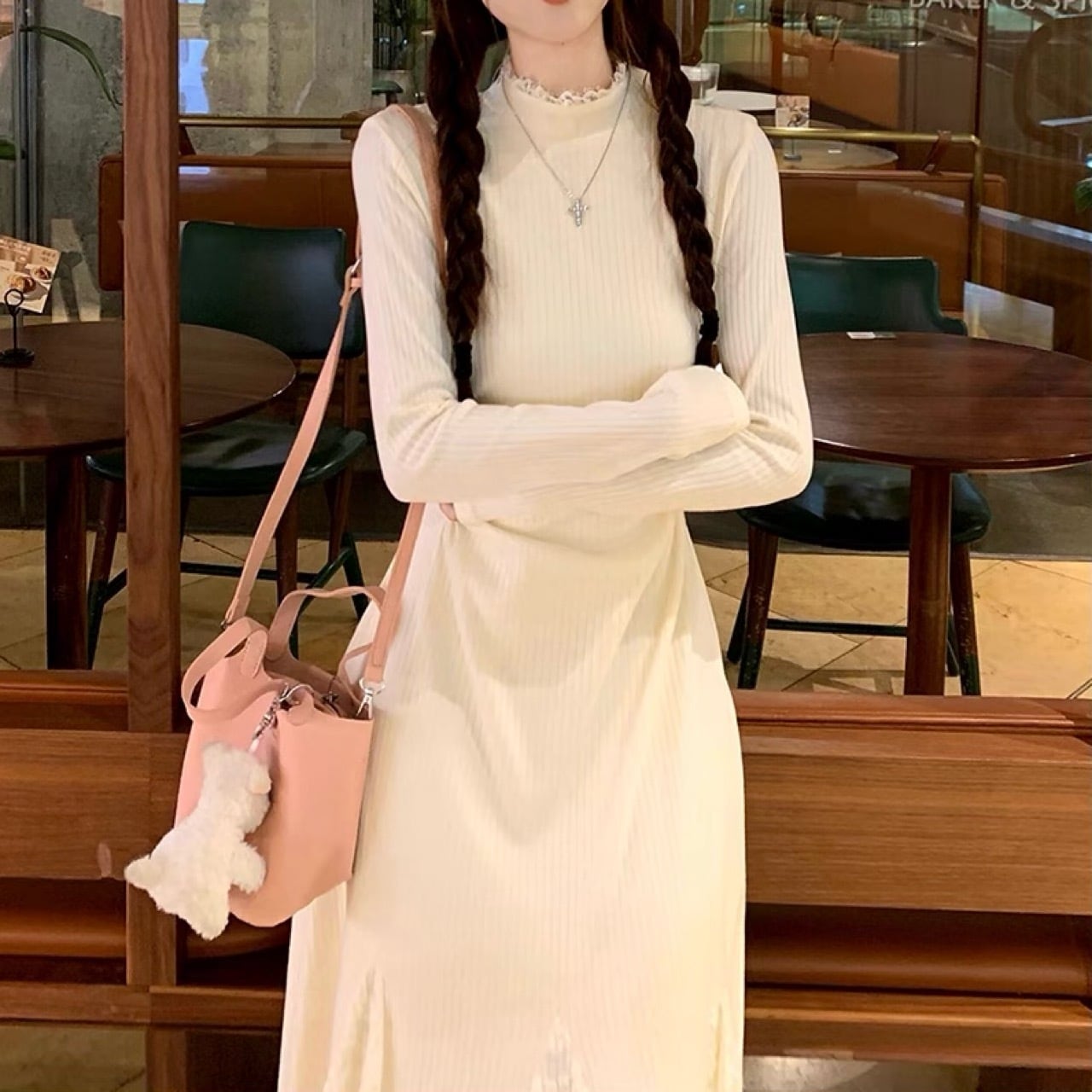 レースのフレアデザインが印象的なニットワンピースです。