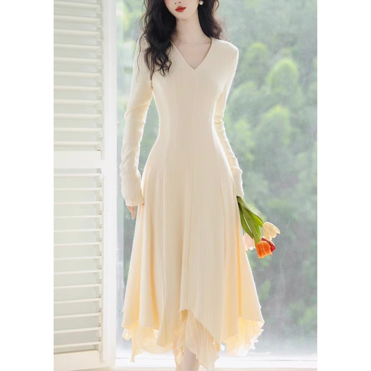 やわらかニット素材がひらり〜っと風になびく、とっておきのワンピースが登場♪ウエストのレースアップリボンがきゅっと女性らしさを演出し、Aラインシルエットがすらり〜っと美しいラインを描きます。胸元のさりげないフリルディテールがふわっと上品な印象をプラス。