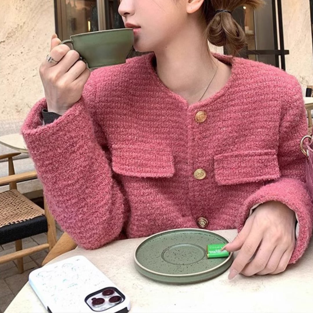 ぽわんと膨らんだバルーンスリーブが、まるでマシュマロみたいに愛らしい印象のショートジャケット。くるみボタンがころんと並んで、とびきり可愛いアクセントに♡ コンパクトな丈感で、スタイルアップ効果もばっちりです。後ろ姿もすっきり綺麗に見えるので、歩くたびにふわっと揺れる軽やかなシルエットが気分を上げてくれます。